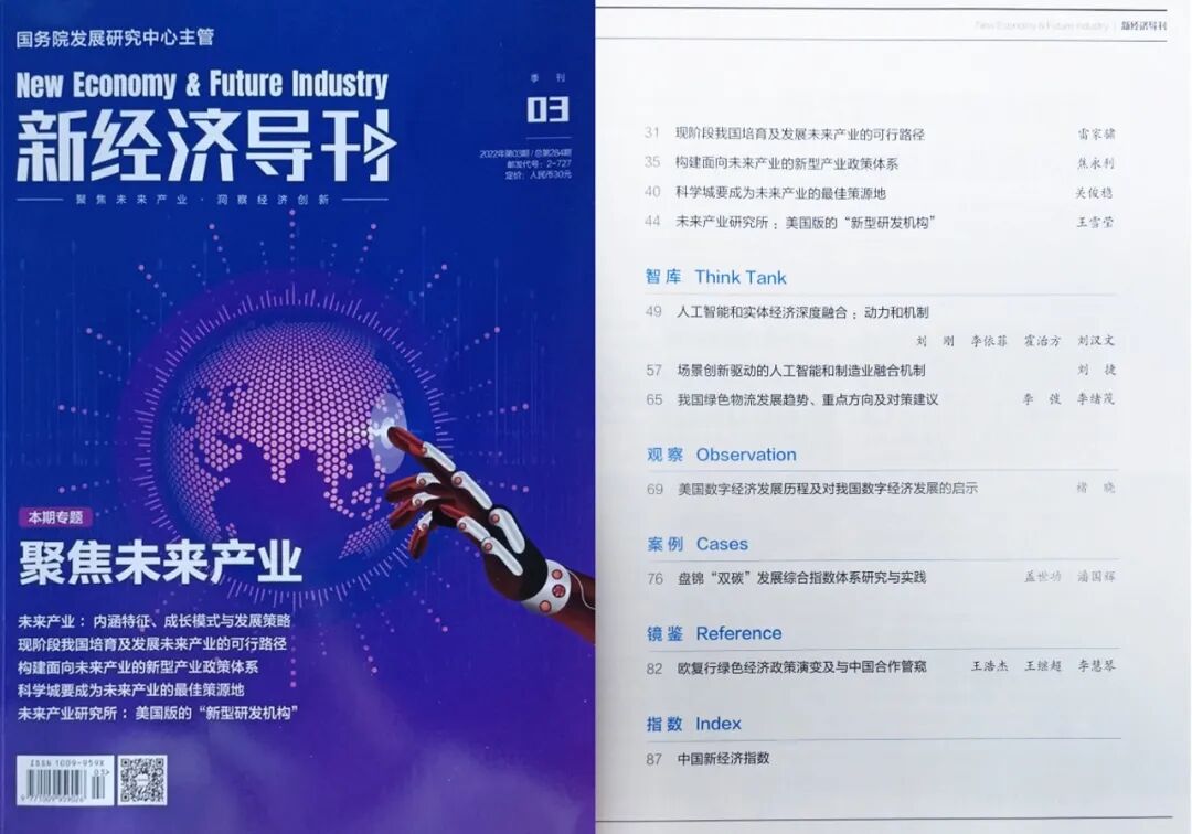 本次盘锦指数研究成果得以收录于《新经济导刊》,既表现了国务院发展研究中心对盘锦指数研究团队工作的肯定和鼓励,同时又体现出鞭策与督促。盘锦绿色发展创新中心研究团队将在现有研究成果基础上,对盘锦指数体系持续开展优化完善,更好的践行服务国家“双碳”战略的初心和使命。