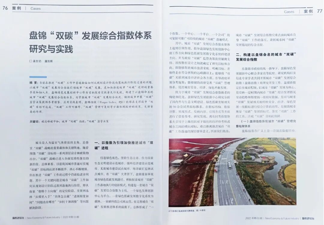 近日,由盘锦市双台子区政府与盘锦绿色发展创新中心英诺森盘锦指数研究团队共同撰写的文章《盘锦“双碳”发展综合指数体系研究与实践》,发表于国家级权威期刊《新经济导刊》2022年第03期的案例栏目。