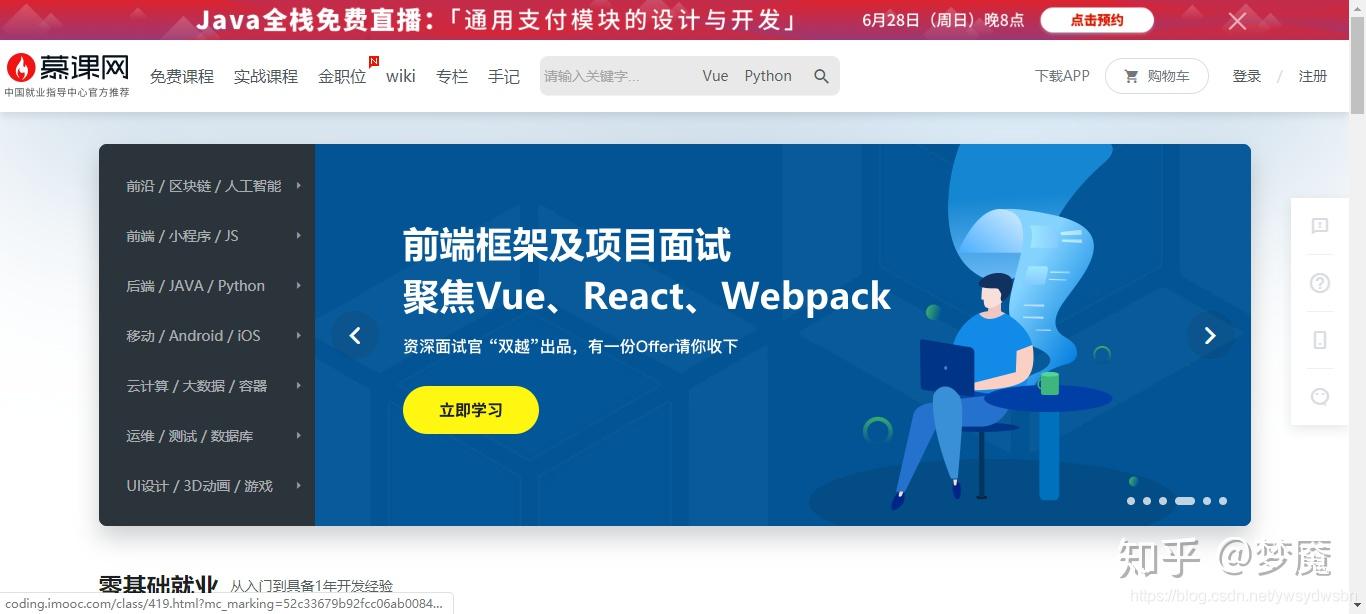 慕课网(IMOOC)是IT技能学习平台。慕课网(IMOOC)课程涉及JAVA、前端、Python、大数据等60类主流技术语言,覆盖了面试就业、职业成长、自我提升等需求场景。