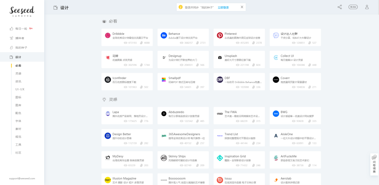 一个设计师导航网站,它里面收录了很多素材网站,有详细的分类,包括灵感、资讯、UI、图标、图库、配色、字体、素材等等,有了它再也不用自己去找各种素材网站了。